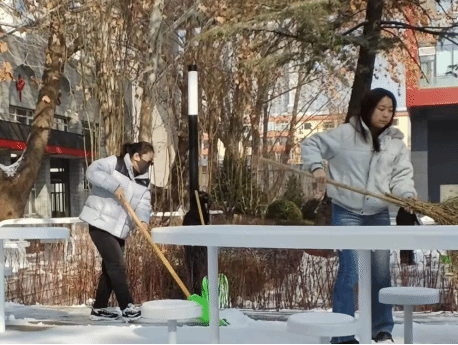 雪落校园,情暖寒冬。为及时清除校园积雪,保障师生出行安全,1月1日上午,晨曦志愿服务队组织11名志愿者,在校本部开展“扫雪护行”志愿活动。活动当天,寒风凛冽,但志愿者们仍准时集结。在有序的统一调度下,志愿者们领取铁锹、扫帚等工具后,迅速投入扫雪工作。清理范围从教工餐厅往东至立德树人广场。