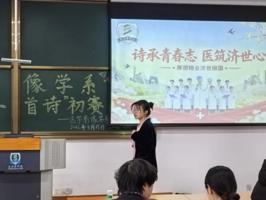 春日晴和风光美,诗情朗朗暖心扉。3月15日上午,我系于校本部北区润智楼301教举办“诗承青春志,医筑济世心”朗诵比赛初赛。三支队伍同台竞技,用吟诵传递青春理想与医者初心。赛场之上,选手们精神饱满、各展风采用真挚的声音传递诗意,用饱满的情感诠释初心。