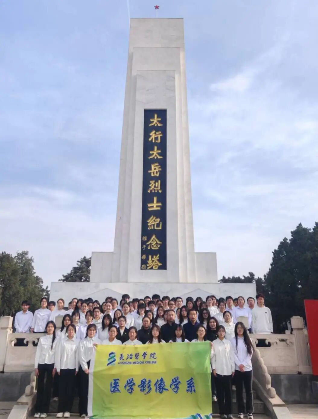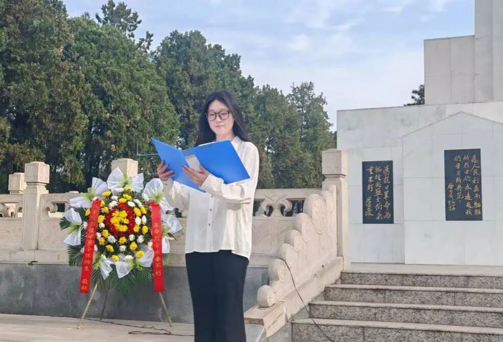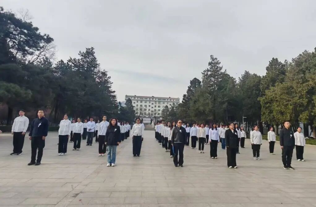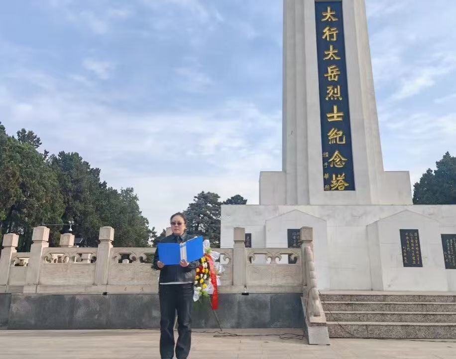 在太行太岳烈士纪念碑前,全体师生胸佩白花,伴着庄严国歌垂首肃立,怀着沉重的心情向革命先烈致以深切哀思。学生代表孔祥竹同学致悼念词,她回望英烈们浴血奋战的峥嵘岁月,号召同学们传承英烈舍生取义、报效家国的精神,以知识武装头脑,用实干铺就前路。