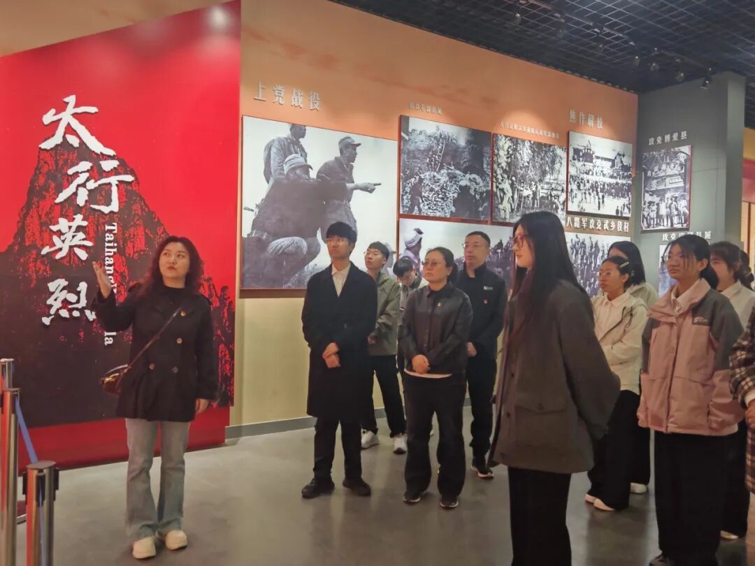 随后,全体成员参观了纪念堂,学生第二党支部书记侯小亮老师以太行太岳英烈的革命事迹,号召同学们传承英烈精神,学好专业知识,练就过硬本领。大家在参观瞻仰革命史实的过程中,系团委书记杨莉老师和学生第一党支部书记刘静老师分别讲述了国民党将领武士敏将军的事迹和黄崖洞保卫战,同学们在党团课教育中,感受到了红色精神的力量,汲取了浓厚的精神食粮。